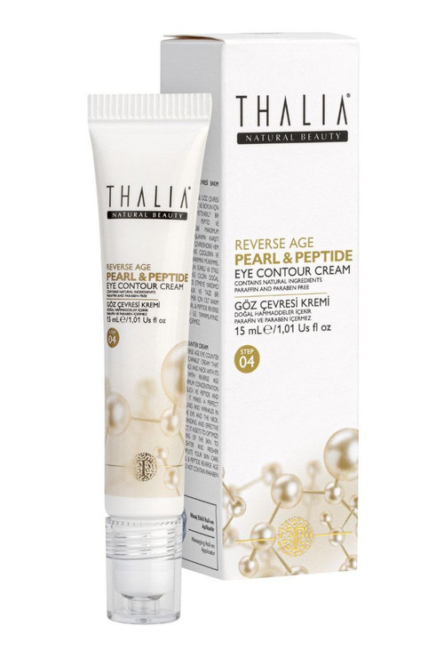 برای حمایت از ظاهری درخشان تر و شاداب تر، روتین مراقبت از پوست خود را با مراحل سری معکوس سن مروارید و پپتید Thalia تکمیل کنید. مشخصات فنی: حاوی مواد مضر برای سلامت انسان مانند پارابن و پارافین نیست.